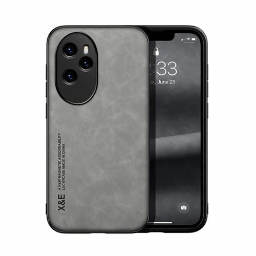 Funda para Honor 100 Pro Skin Feel con Parte Trasera de Cuero Magnético (Gris Claro)