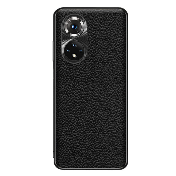 Funda para Honor 50 con Textura Litchi de Cuero Genuino (Negro)