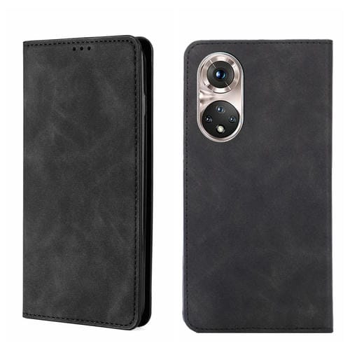 Funda Honor 50 Pro Skin Feel Magnetic Horizontal Flip de Cuero (Negro)