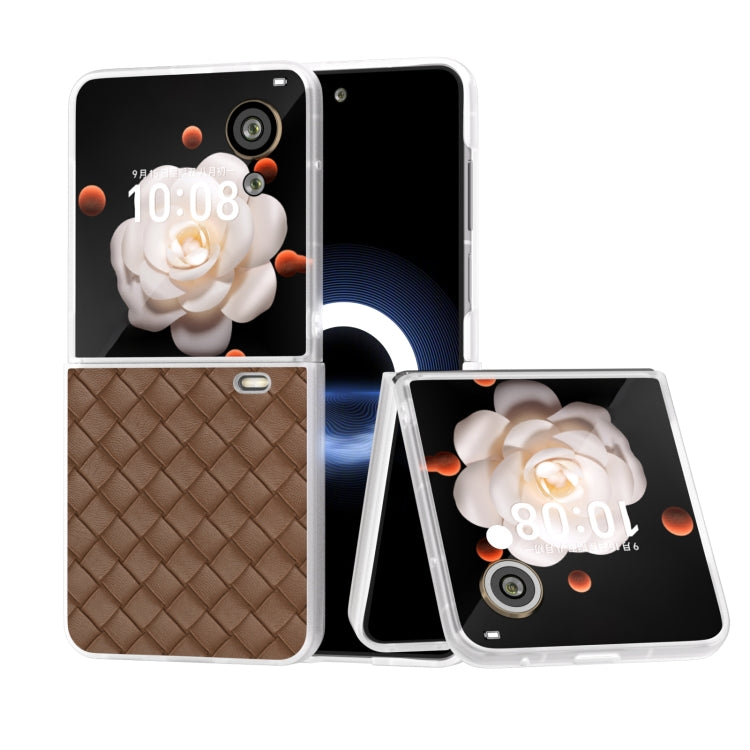 Estuche para Honor Magic V Flip de PU con Textura Tejida y Marco Translúcido Esmerilado (Marrón)