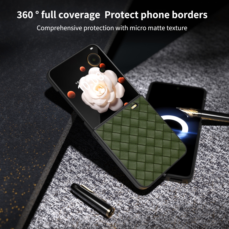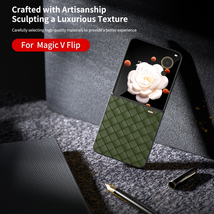 Funda para Honor Magic V Flip de PU con Textura Tejida y Marco Negro (Verde)