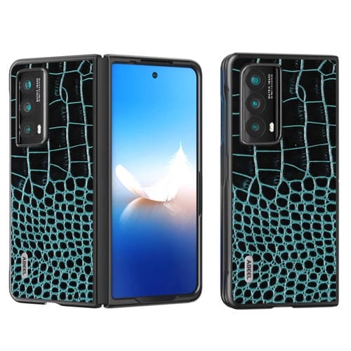 Funda para Honor Magic Vs2 Abeel con Borde Negro y Patrón Cocodrilo de Cuero Genuino (Azul)