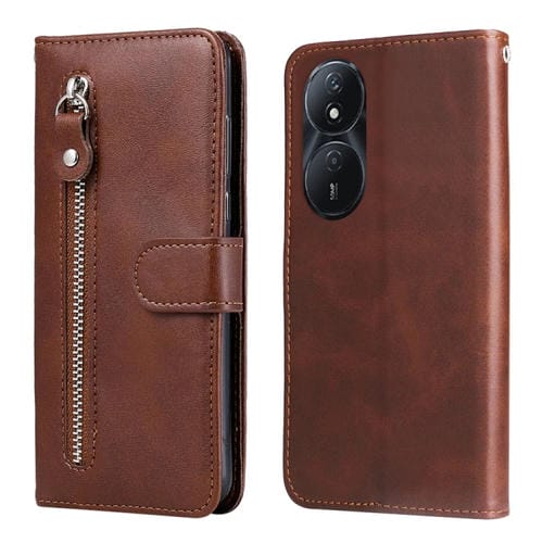 Funda para Honor Play 50 Plus de Cuero con Cremallera y Textura de Becerro (Marrón)