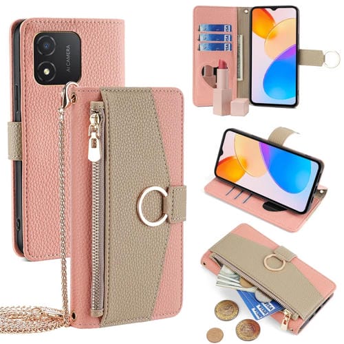 Funda para Honor X5 4G de Cuero con Textura Litchi Cruzada (Rosa)