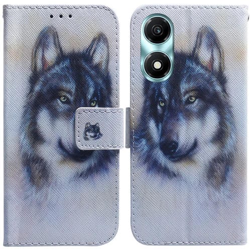 Funda de Cuero con Tapa para Honor X5 Plus y Play 40C con Dibujo Lobo Blanco
