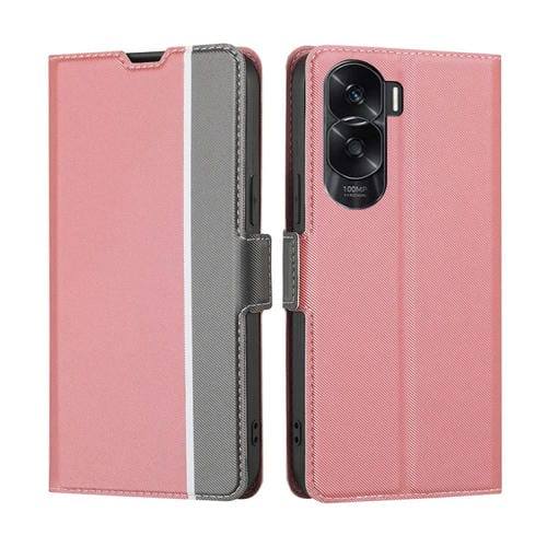 Funda de Cuero para Honor X50I 5G con Textura de Sarga y Botón Lateral (Rosa)