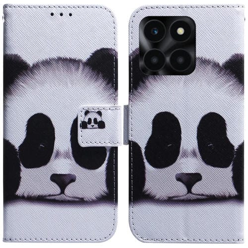 Funda de Cuero para Honor X6A con Tapa y Dibujo Coloreado (Panda)