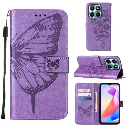 Funda de Cuero para Honor X6A con Mariposa en Relieve (Púrpura)