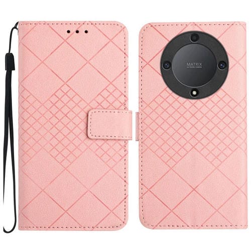 Funda de Cuero para Honor X9B con Textura de Rejilla Rómbica (Rosa)