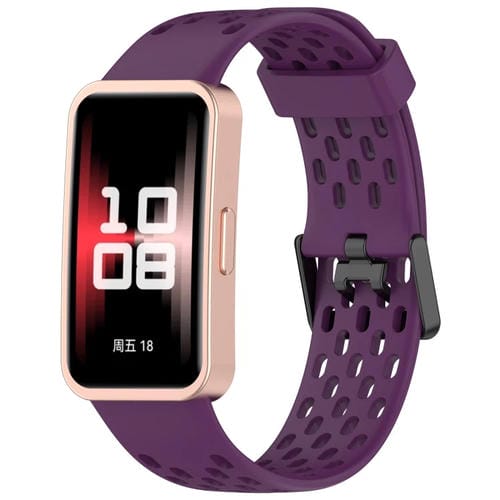 Correa de Silicona para Huawei Band 9/9 Nfc/8/8 Nfc Estilo Agujero con Hebilla Negra Dual (Púrpura Oscuro)