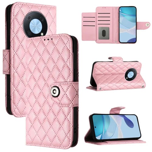Funda para Huawei Enjoy 50 Pro y Nova Y90 con Tapa de Cuero, Textura Rómbica y Cordón (Rosa)