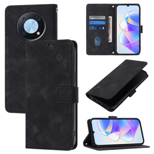 Funda de Cuero Skin Feel para Huawei Enjoy 50 Pro y Nova Y90 en Relieve (Negro)