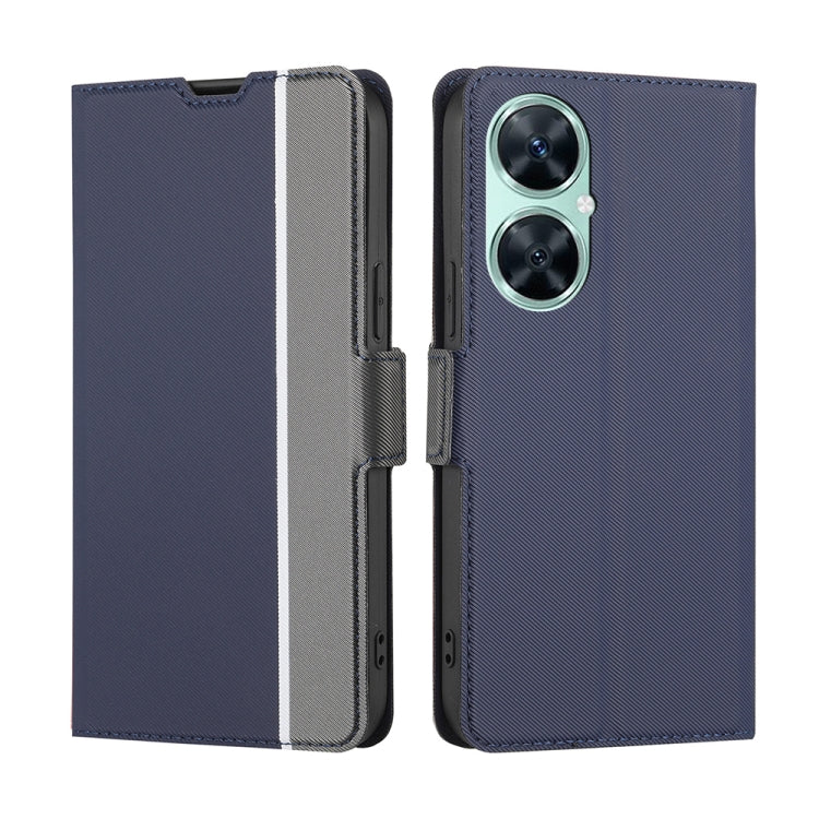 Funda de Cuero para Huawei Enjoy 60 Pro y Nova 11I con Textura de Sarga y Botones Laterales (Azul)
