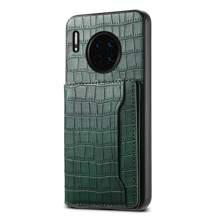Funda para Huawei Mate 30 con Diseño de Bolsa para Tarjetas y Textura de Cocodrilo (Verde)