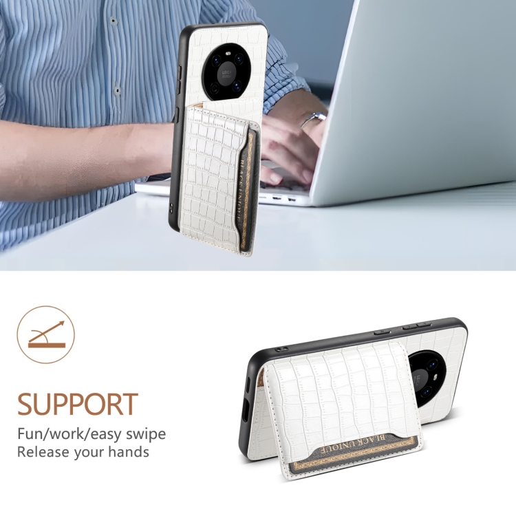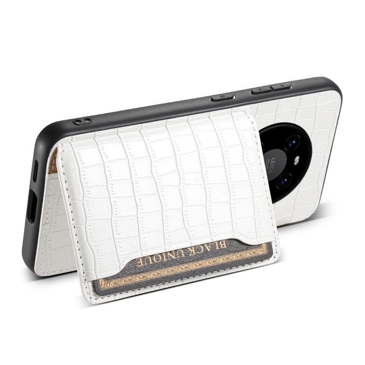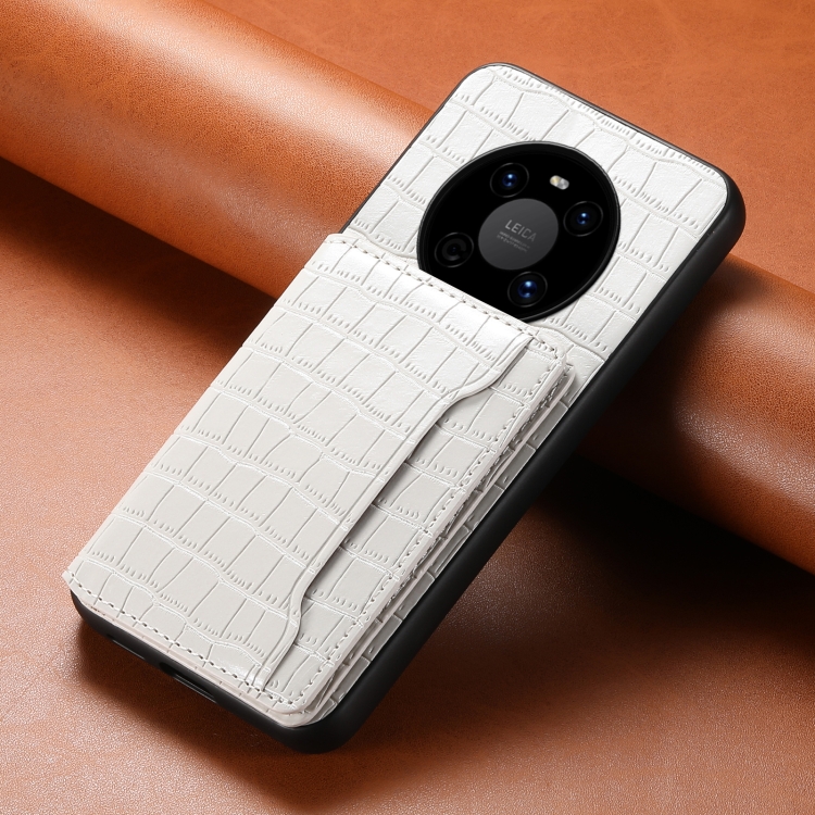 Estuche para Huawei Mate 40 con Diseño de Bolsa para Tarjetas y Textura de Cocodrilo (Blanco)