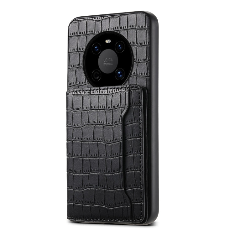 Funda para Huawei Mate 40 con Diseño Bolsa para Tarjetas y Textura de Cocodrilo (Negro)