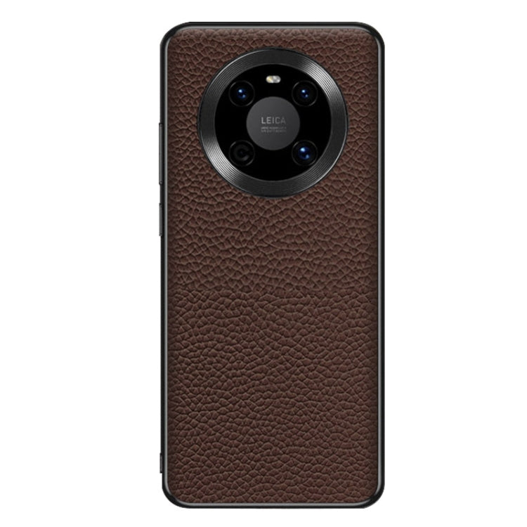 Funda para Huawei Mate 40 con Textura Litchi de Cuero Genuino (Café)