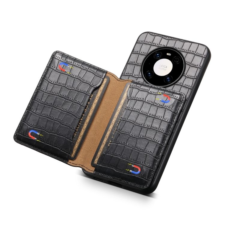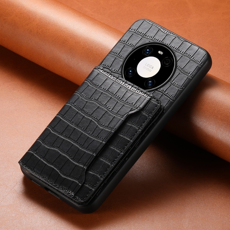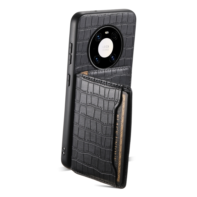 Funda para Huawei Mate 40 Pro con Diseño Bolsa para Tarjetas y Textura de Cocodrilo (Negro)