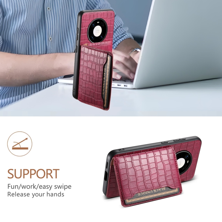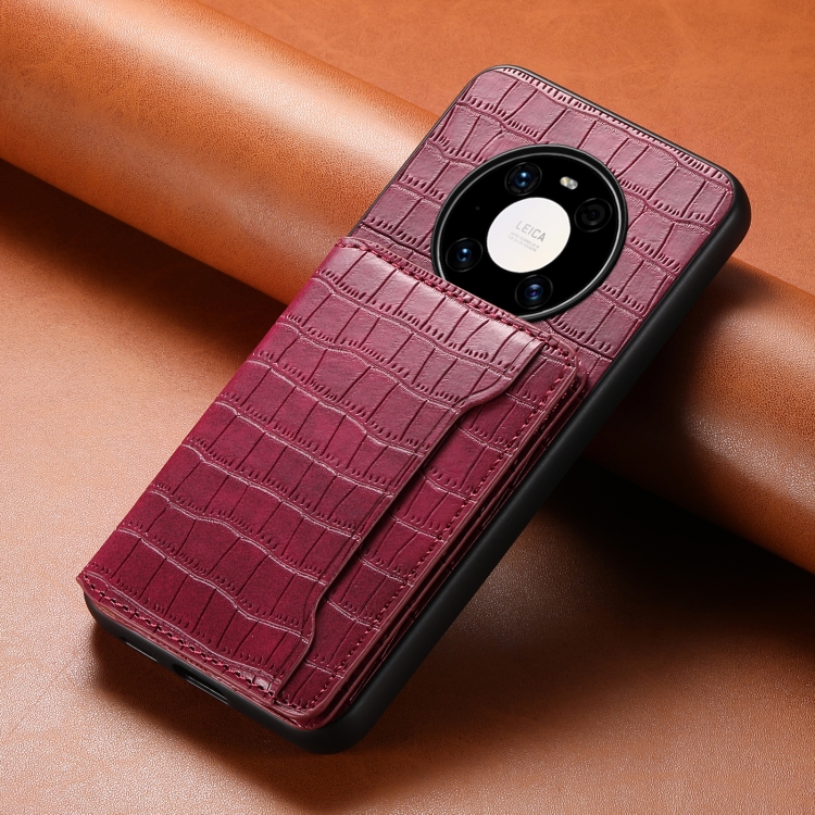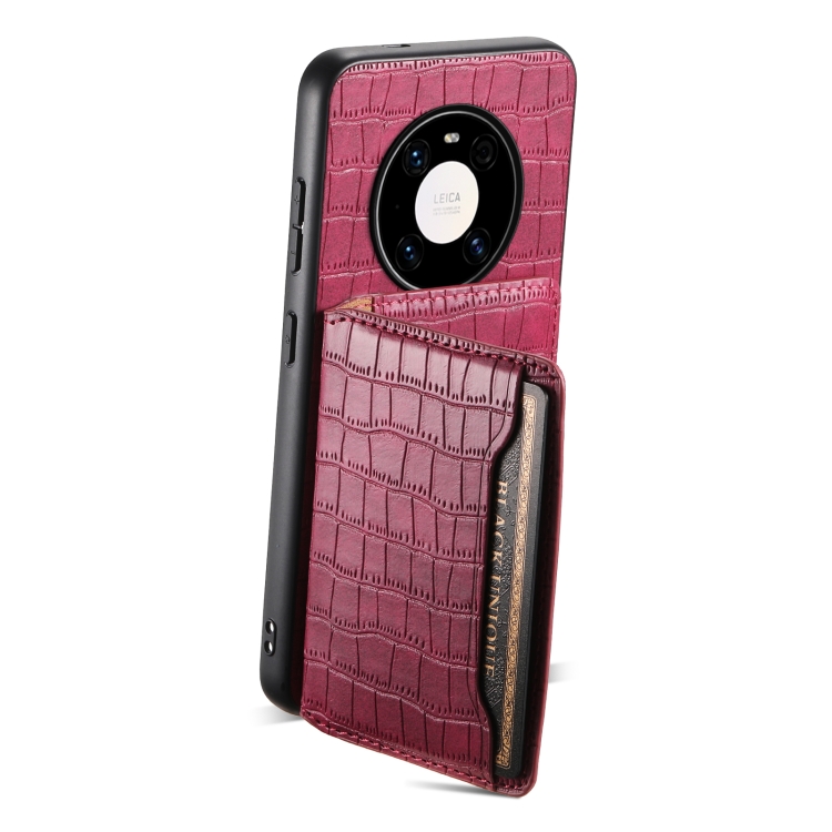 Funda para Huawei Mate 40 Pro con Diseño de Bolsa para Tarjetas y Textura de Cocodrilo (Rojo)