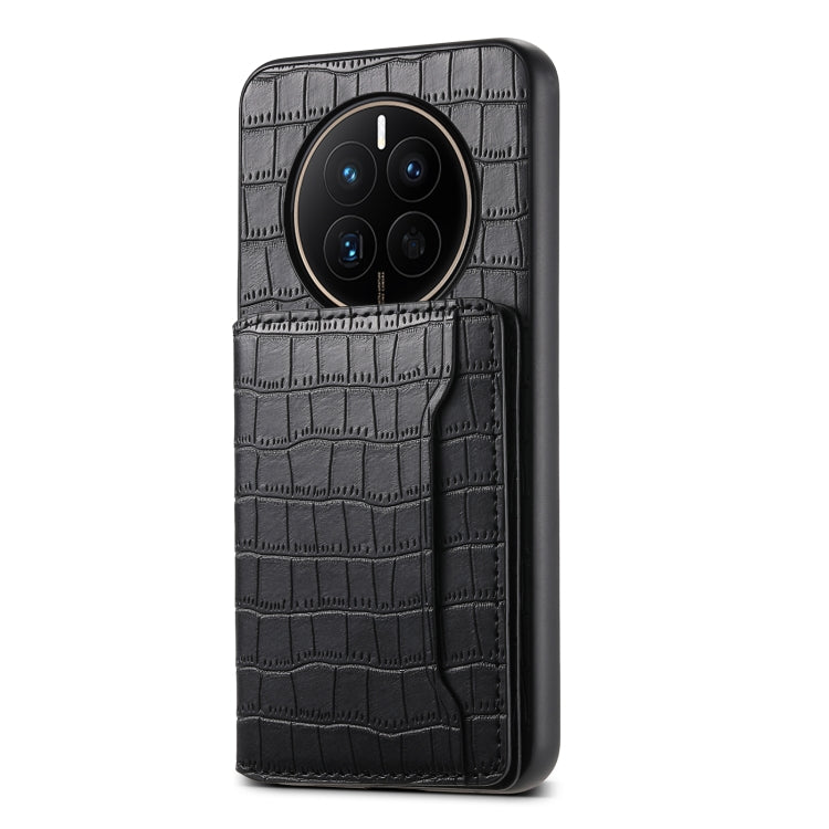 Funda para Huawei Mate 50 con Diseño de Bolsa para Tarjetas y Textura de Cocodrilo (Negro)