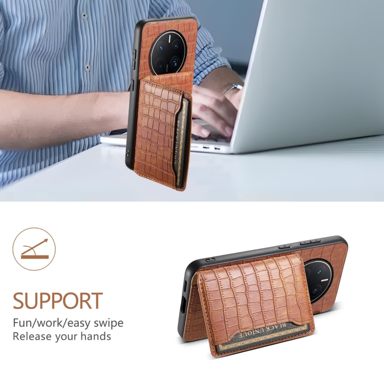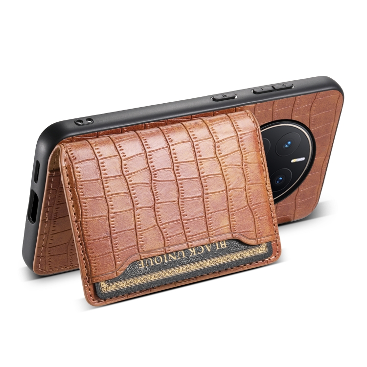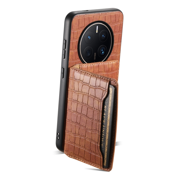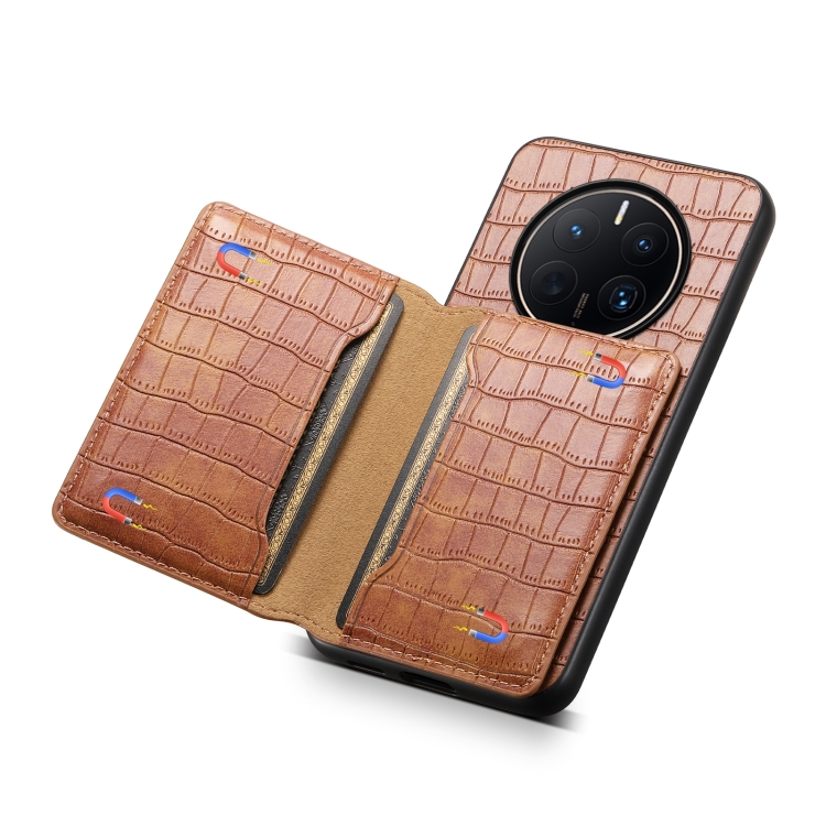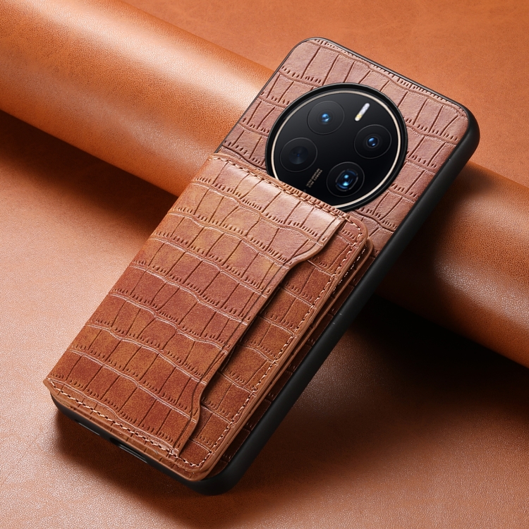 Funda para Huawei Mate 50 Pro con Diseño Bolsa para Tarjetas y Textura de Cocodrilo (Marrón)