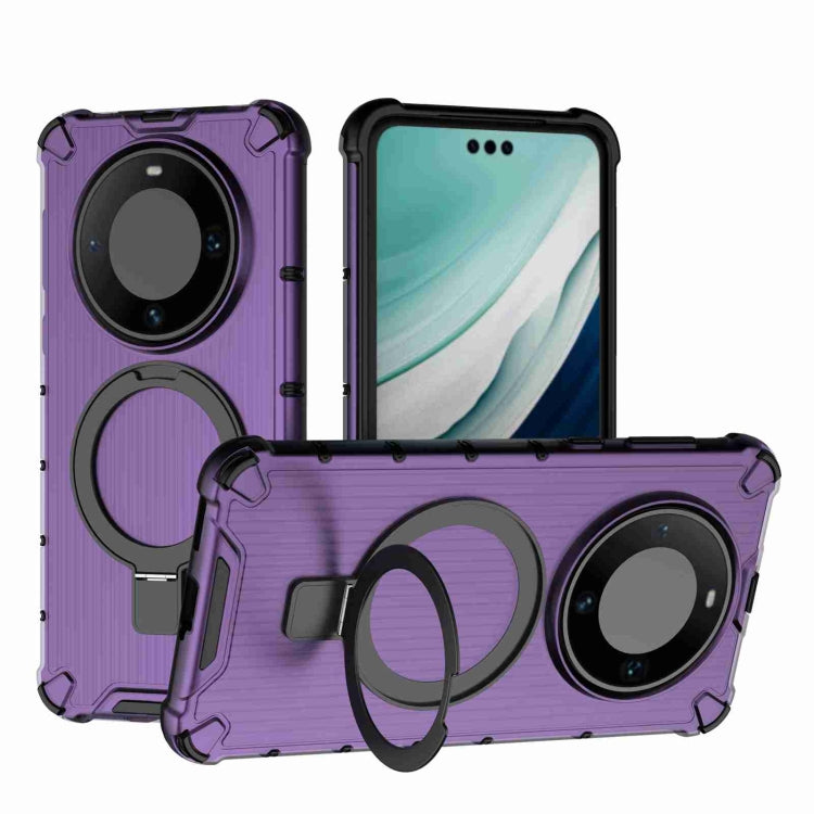 Funda para Huawei Mate 60 Pro con Soporte y Rejilla a Prueba de Golpes (Púrpura)