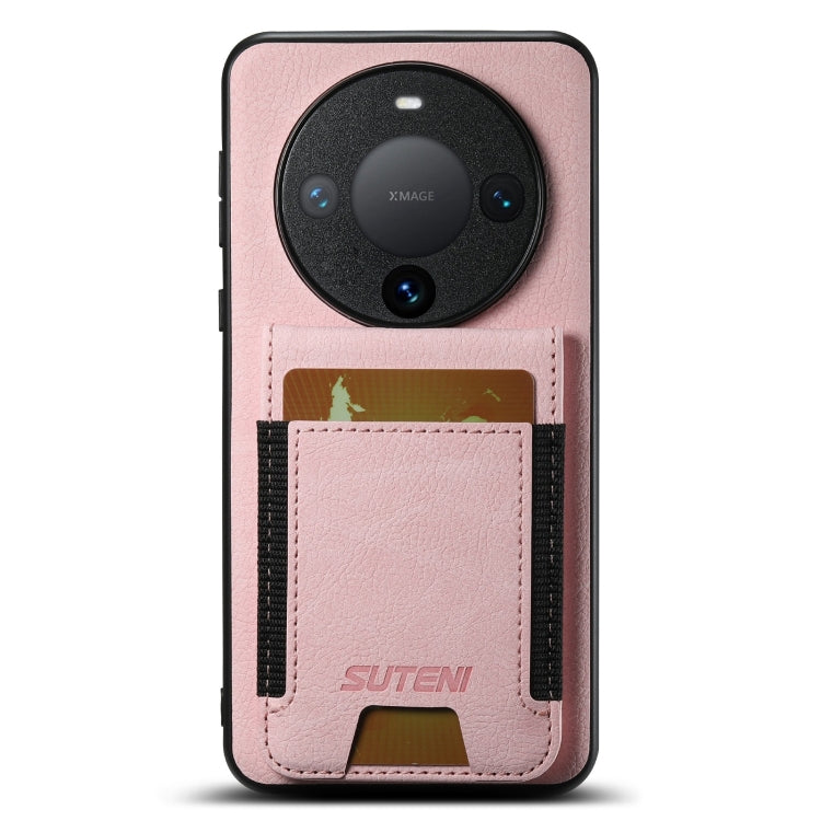 Funda para Huawei Mate 60 Pro Suteni H03 con Soporte para Tarjeta Cuero Litchi (Rosa)