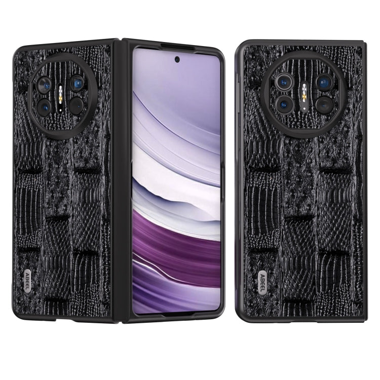 Funda para Huawei Mate X5 Abeel de Cuero Genuino con Patrón Mahjong y Borde Negro (Negro)