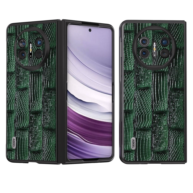 Funda para Huawei Mate X5 Abeel Cuero Genuino con Patrón Mahjong y Borde Negro (Verde)