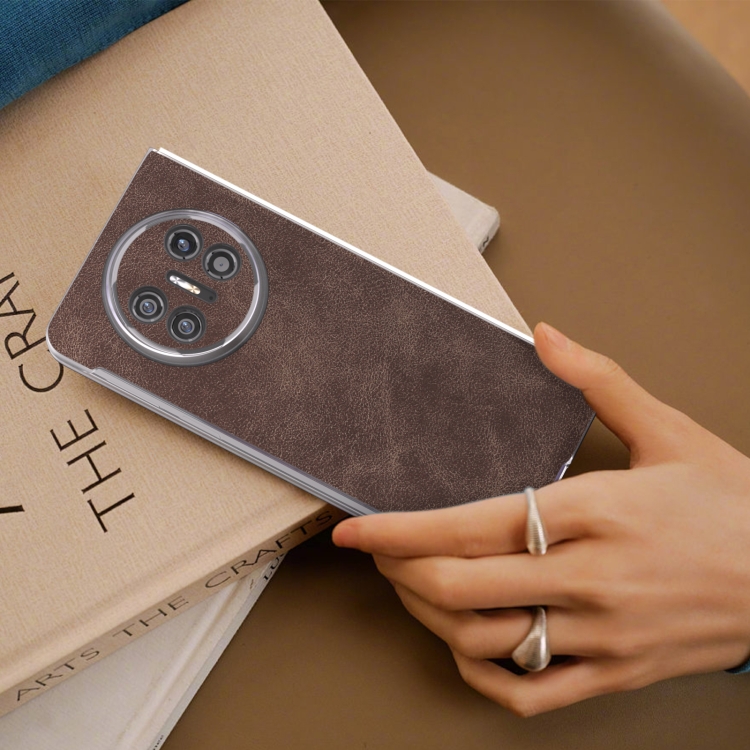 Funda para Huawei Mate X5 con Borde Transparente Esmerilado de Cuero PU (Café)