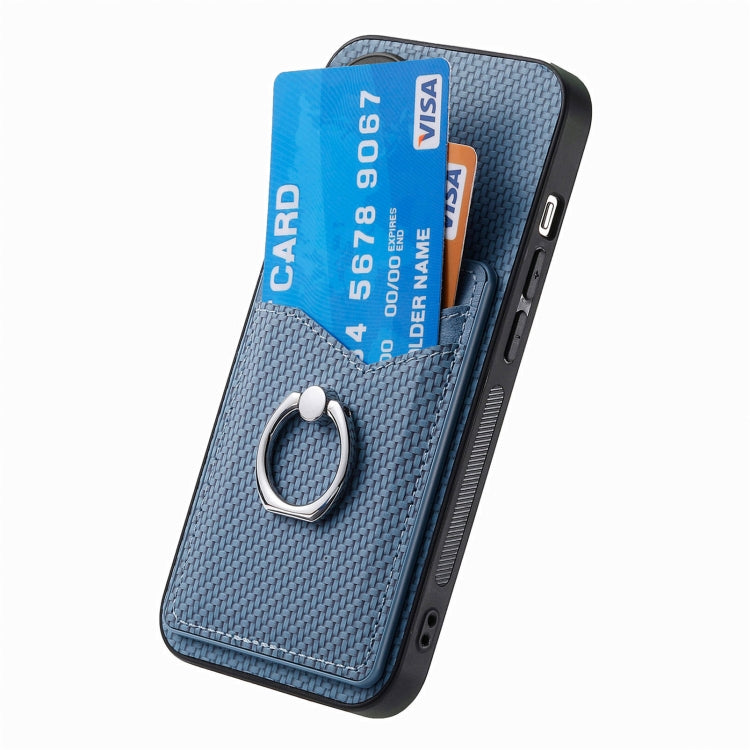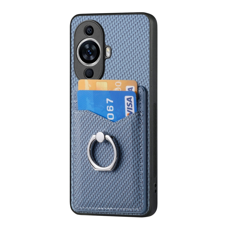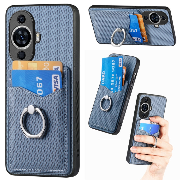 Funda para Huawei Nova 11 con Anillo y Billetera con Tarjeta de Fibra de Carbono (Azul)