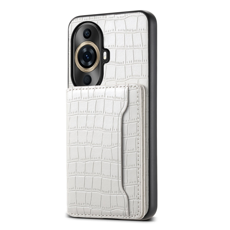 Funda para Huawei Nova 11 Pro con Diseño Bolsa para Tarjetas y Textura de Cocodrilo (Blanco)