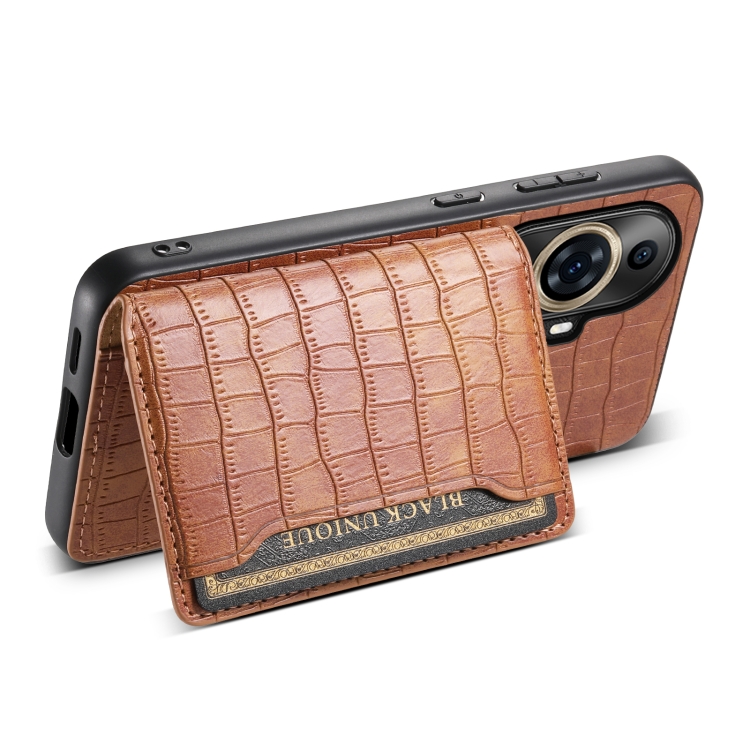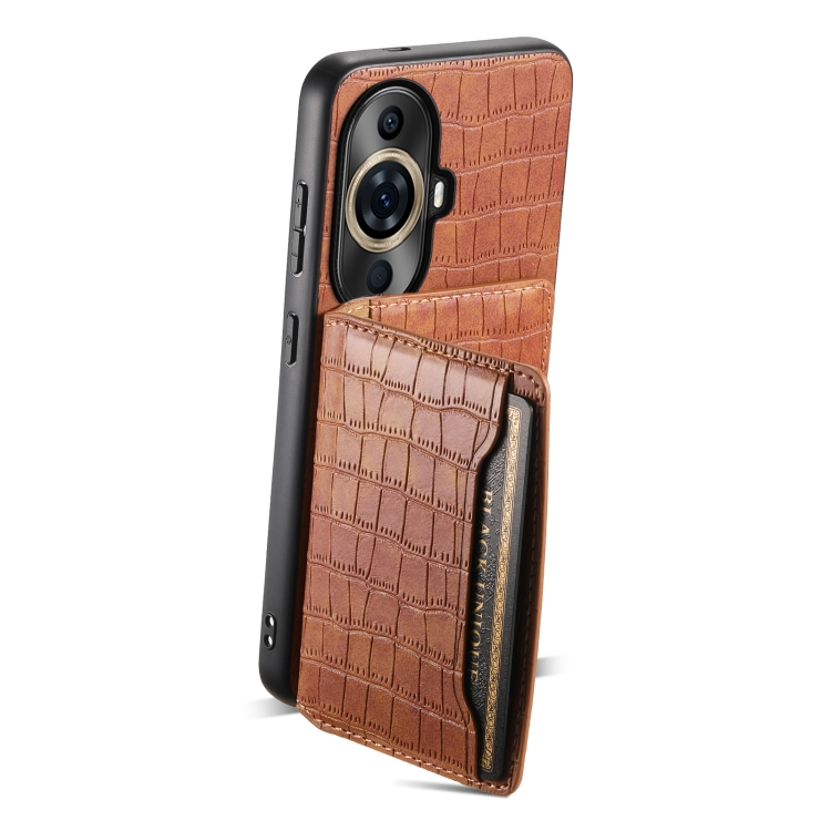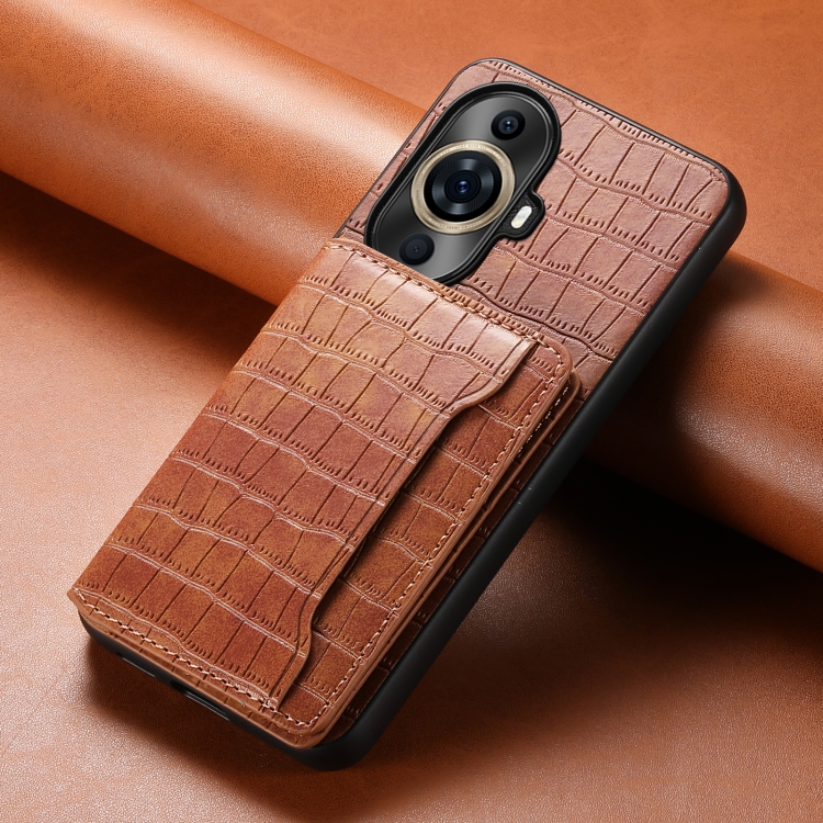 Funda para Huawei Nova 11 Pro con Diseño de Bolsa para Tarjetas y Textura de Cocodrilo (Marrón)