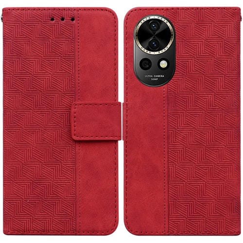 Funda de Cuero para Huawei Nova 12 con Relieve Geométrico (Rojo)