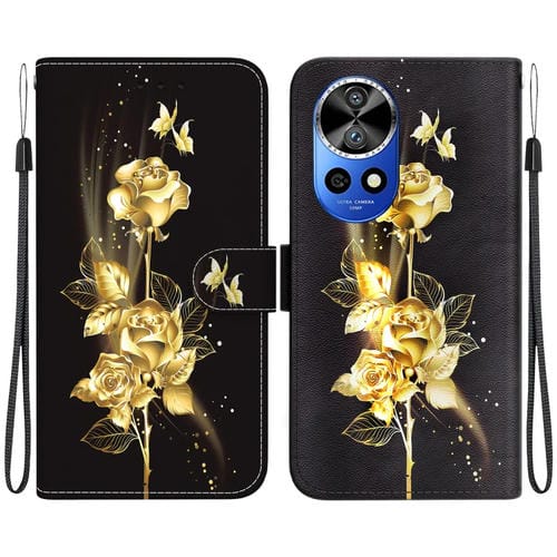 - 1x Funda de Cuero para Huawei Nova 12 Ultra con Dibujo Coloreado (Mariposa Dorada Rosa)