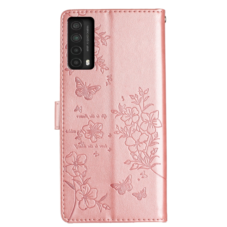 - 1x Funda de Cuero para Huawei P Smart 2021 y Y7A con Relieve Flor y Mariposa (Oro Rosa)