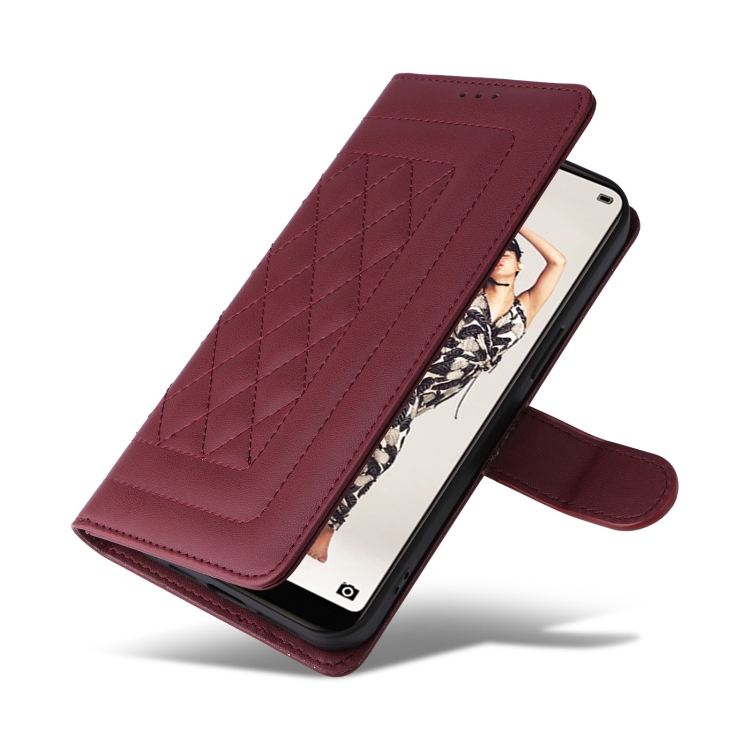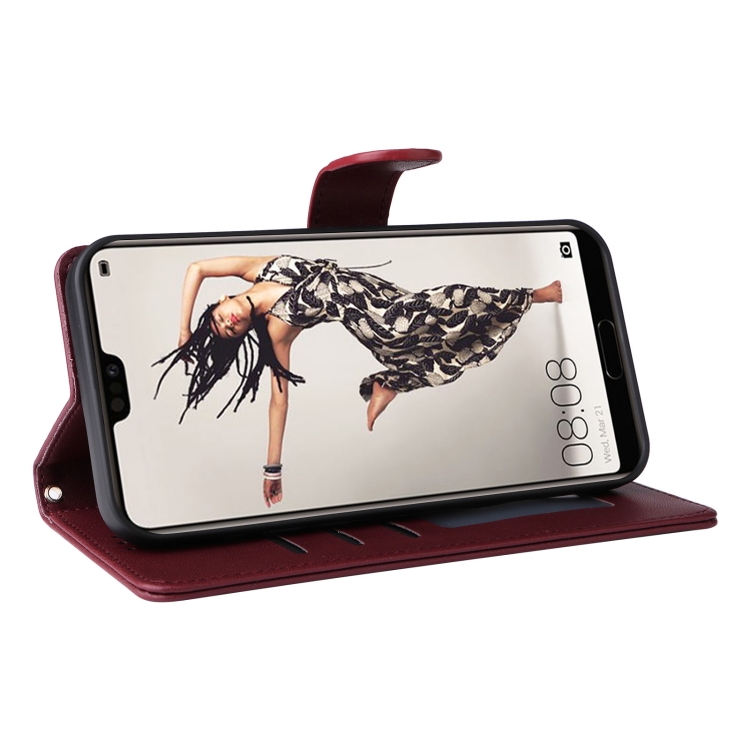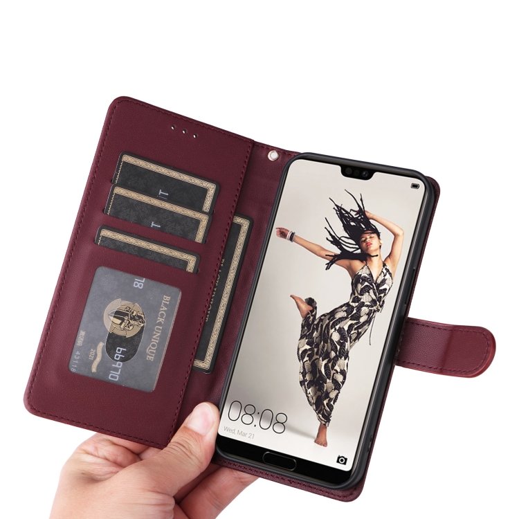 Funda de Teléfono Huawei P20 Pro con Tapa de Cuero Diamond Lattice (Rojo Vino)