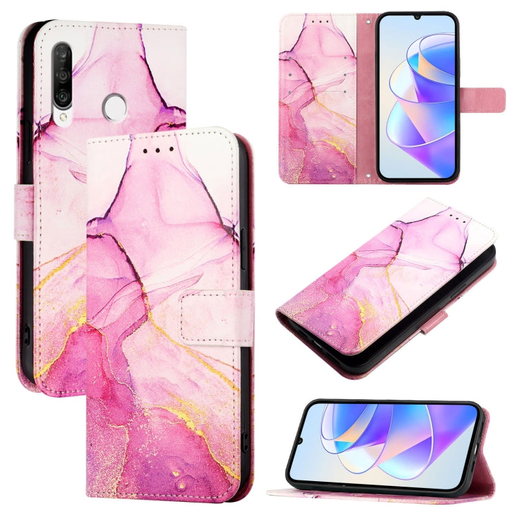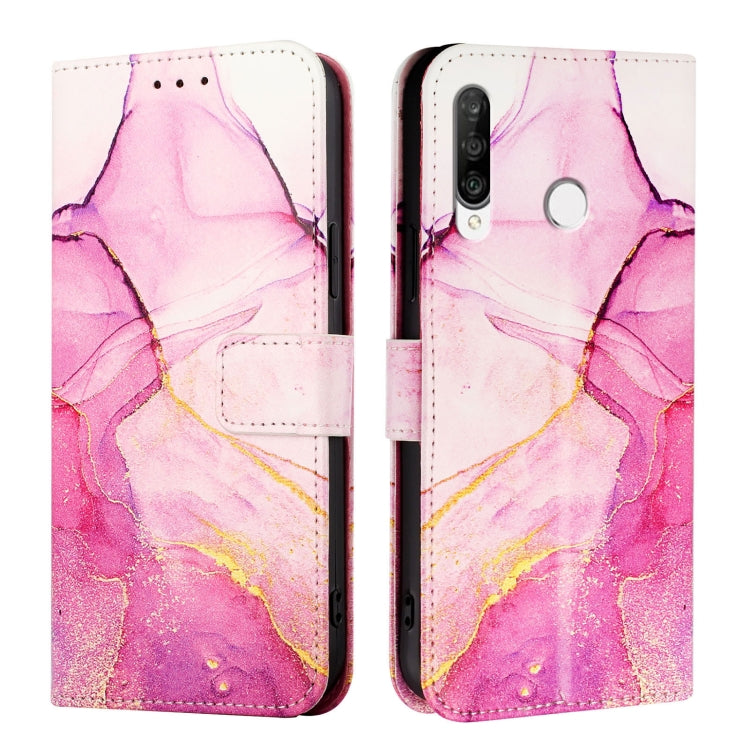 Funda de Cuero con Tapa para Huawei P30 Lite / Nova 4E Pt003 con Patrón Mármol (Rosa Púrpura Dorado)