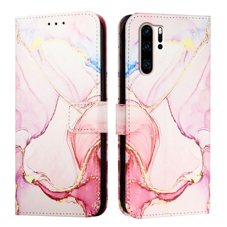Funda de Cuero para Huawei P30 Pro Pt003 con Tapa y Patrón de Mármol (Oro Rosa)