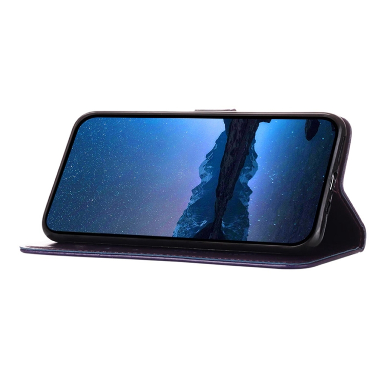 Funda de Cuero para Huawei P50 con Mariposa en Relieve (Púrpura Oscuro)