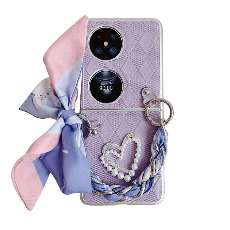 Funda para Huawei P50 Pocket con Textura Rhombus de Cuero, Bufanda y Pulsera en Forma de Corazón a Prueba de Golpes (Púrpura)