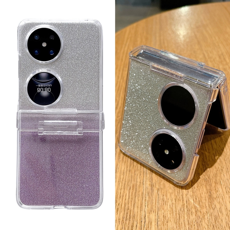 Funda para Huawei P50 Pocket Skin Feel PC Flash Paper a Prueba de Golpes (Gradiente Plateado Púrpura)