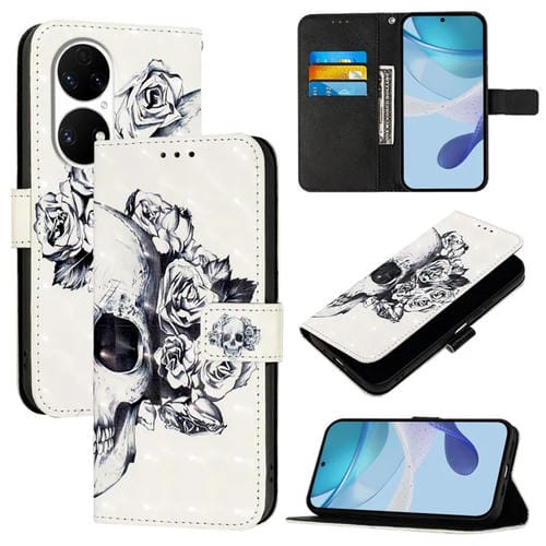 Funda de Cuero para Huawei P50 Pro con Tapa Horizontal y Pintura 3D (Calavera)