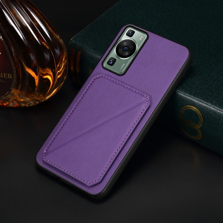 Funda para Huawei P60 / P60 Pro D04 con Ranura para Tarjeta Dual y Textura de Pantorrilla (Púrpura)