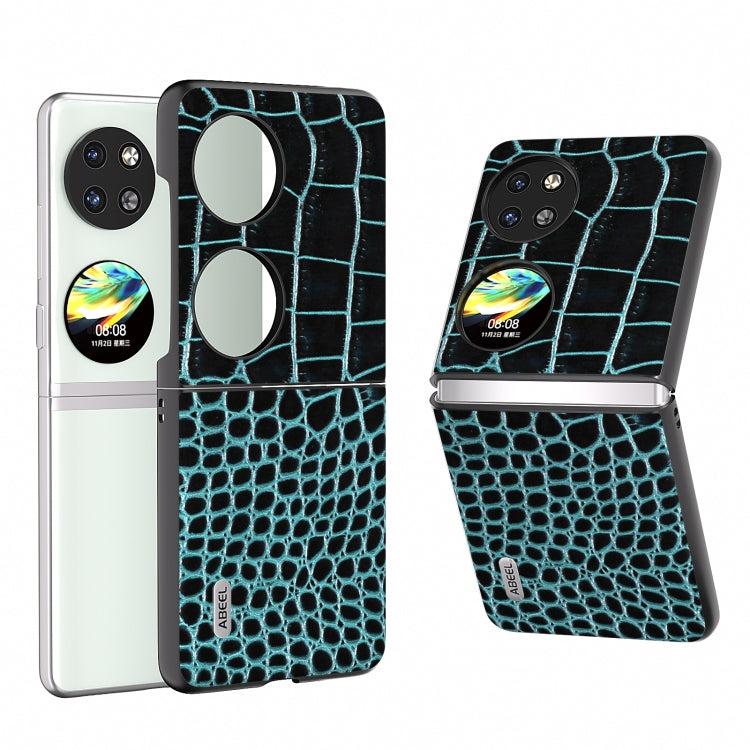 Funda para Huawei P60 Pocket Abeel Cuero Genuino Patrón Cocodrilo Borde Negro (Azul)