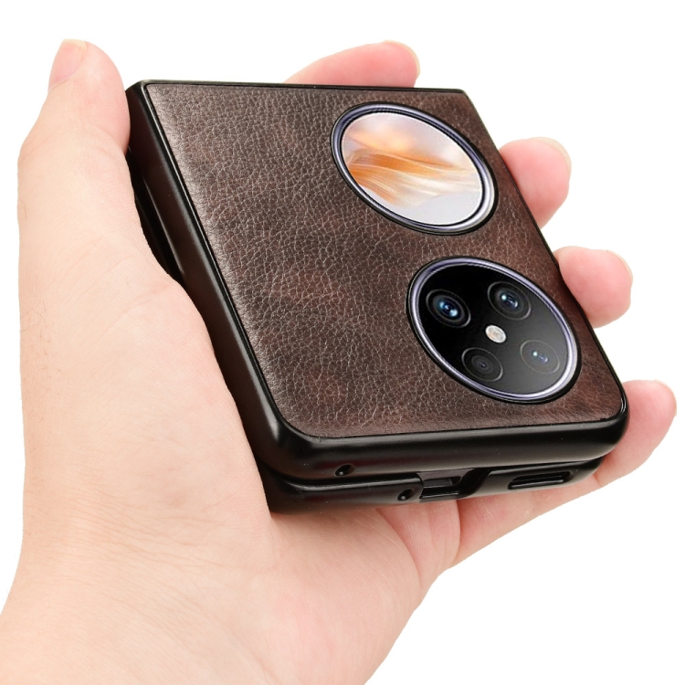 Funda para Huawei Pocket 2 con Contraportada y Textura Litchi (Marrón)