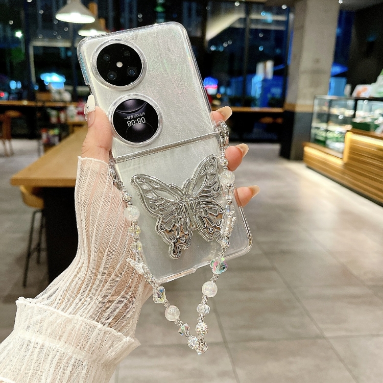 Funda para Huawei Pocket 2 Patrón Mariposa 3D Plumas PC Hebilla Lateral Cobertura Total con Pulsera