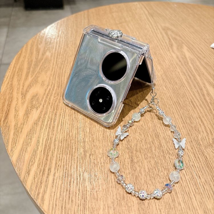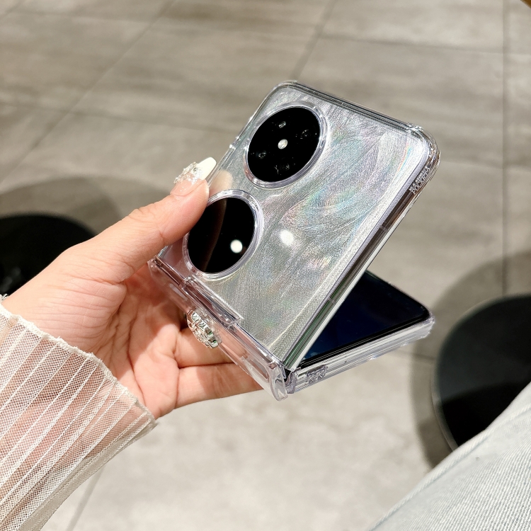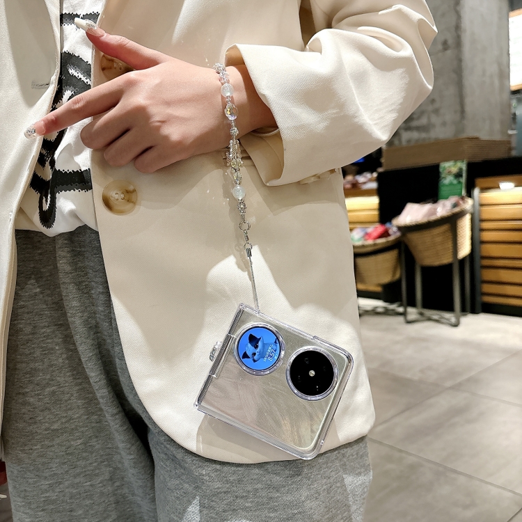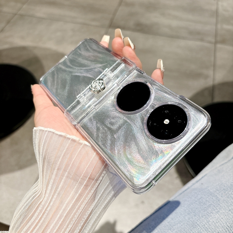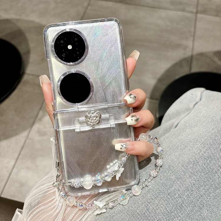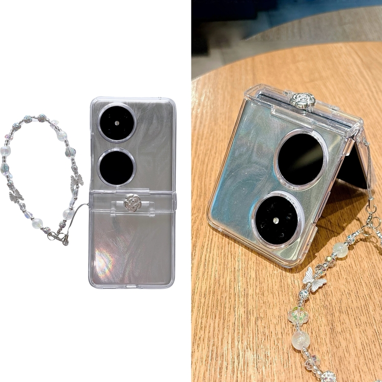 Funda para Huawei Pocket 2 Skin Feel PC Feather Gauze Glitter Paper Camellia con Pulsera (Transparente)