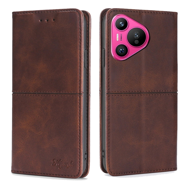 Funda para Huawei Pura 70 5G de Cuero Magnético con Textura de Vaca (Marrón Oscuro)