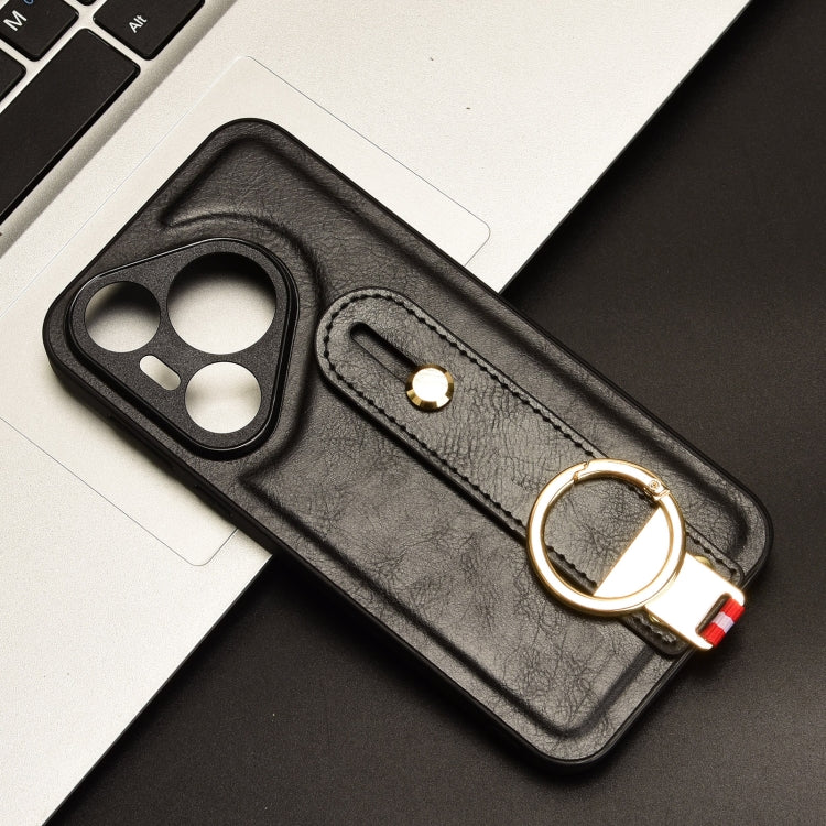 Funda Trasera de Cuero para Huawei Pura 70 5G con Pulsera (Negro)